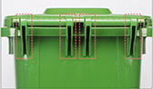 四组八条加厚双点支撑设计,牢牢固定桶盖不留缝隙更密封、更坚固