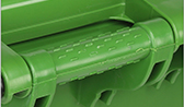 网状加强筋设计,桶沿双层加筋使垃圾桶轻松挂车,不变形,抗冲击