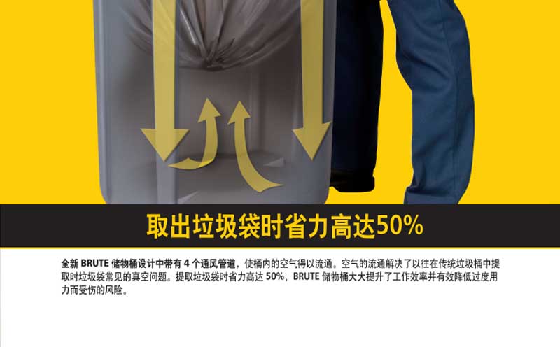 • 增加了通风管道设计,提取装满垃圾的垃圾袋时,相比传统垃圾桶可省力50%以上