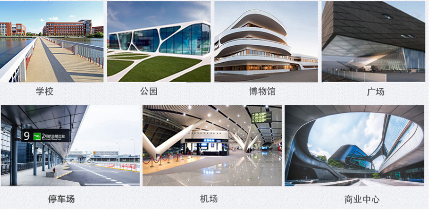 学校、公园、博物馆、广场、停车场、机场、商业中心