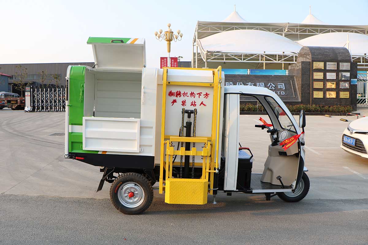 2、装卸桶及货厢升降采用液压控制系统,只要一人操作即可完成垃圾桶的装卸及货厢倾卸;